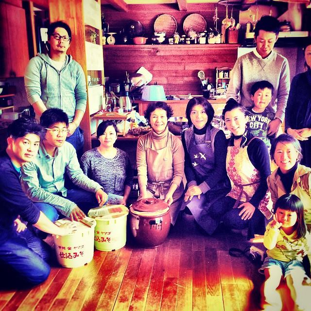 Miso Making in Yamanashi & LondonThis year we met on the 31st of January, a cold Winter’s day when we were glad to be indoors and pounding the soy beans to keep warm. We invite in friends and other families, as it is easier to do in bulk and is a great excuse for a get together. The workshops are sponsored by the government, the aim being to encourage people to eat well and for continuity of traditional skills. At the start of the day, the teachers played this miso making video, a catchy tune that was heard being hummed and sung later that morning.